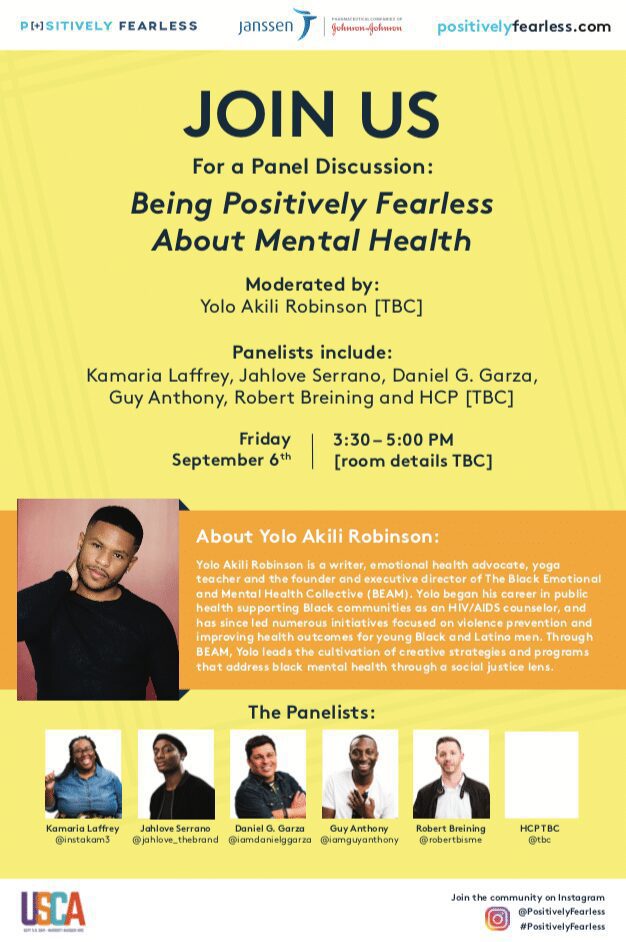 Design poster and postcards to advertise the panel discussion, "Being Positively Fearless About Mental Health" event.